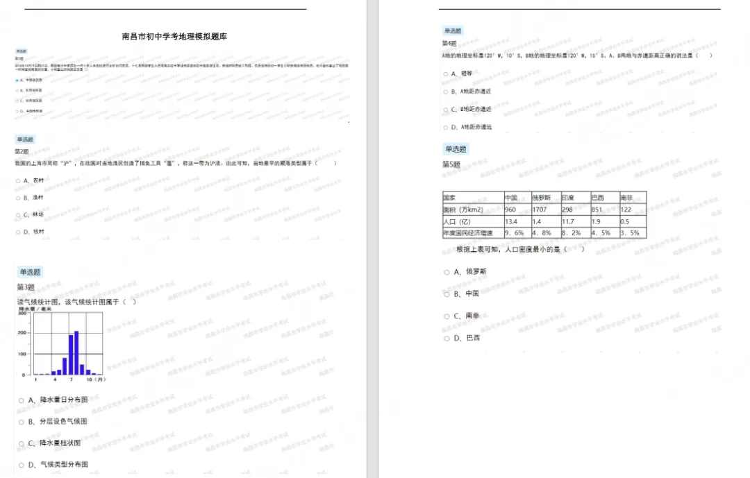 别急!我们整理了 《南昌初中学考生物模拟题库》和 《南昌初中学考地理模拟题库》 ,题目全部来自近三年高频考点,让孩子刷完心里就有数了。