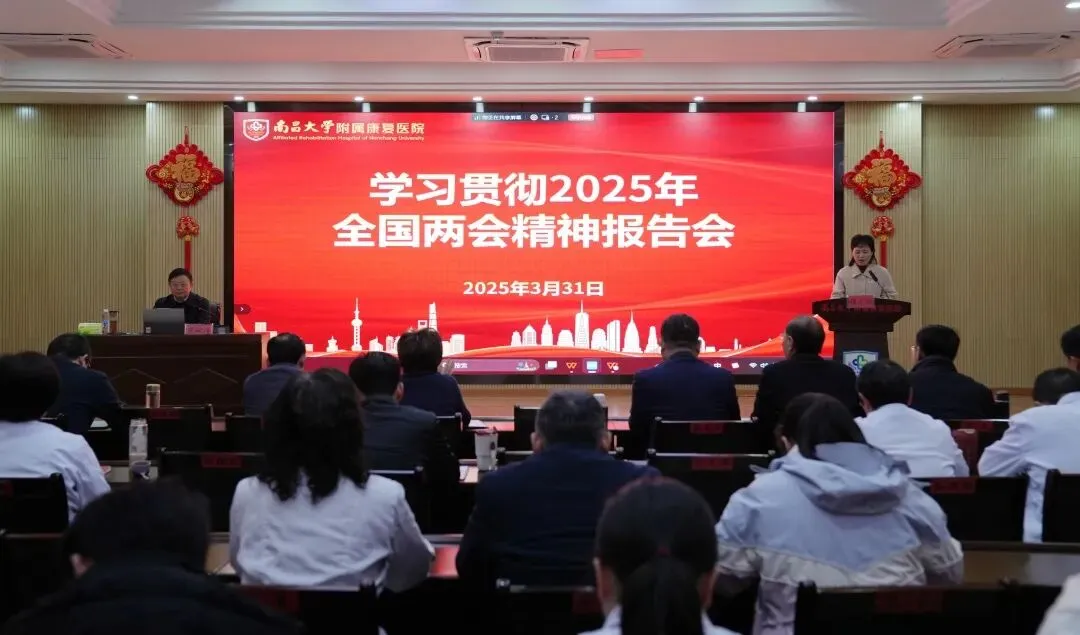 罗嗣海以《深入学习贯彻习近平总书记重要讲话和全国两会精神 把握新要求 落实新部署 推动南大和附院事业新发展》为题,围绕2025全国两会概况、习近平总书记两会重要讲话精神、大会报告的主要内容解读、江西代表团参会情况、南昌大学代表参会情况、遵循“三位一体”新部署推动南大事业新发展六个方面,结合学校和医院发展实际,系统解读了全国两会精神,深刻阐释了习近平总书记关于教育强国、科技强国、人才强国等战略部署,为全院干部职工全面准确掌握习近平总书记重要讲话精神、全国两会精神核心要义指明了方向。报告引起与会人员强烈共鸣,现场掌声不断。