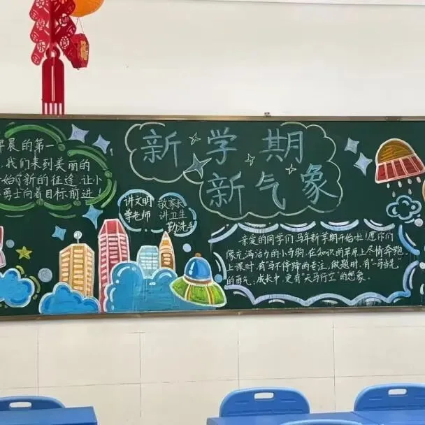 春风吹暖大地,万物迎来新生。为让学生拥抱一个意义非凡的开学日。班主任提前打扫、装点教室,画上最美的黑板画,写上最诚挚的祝福。