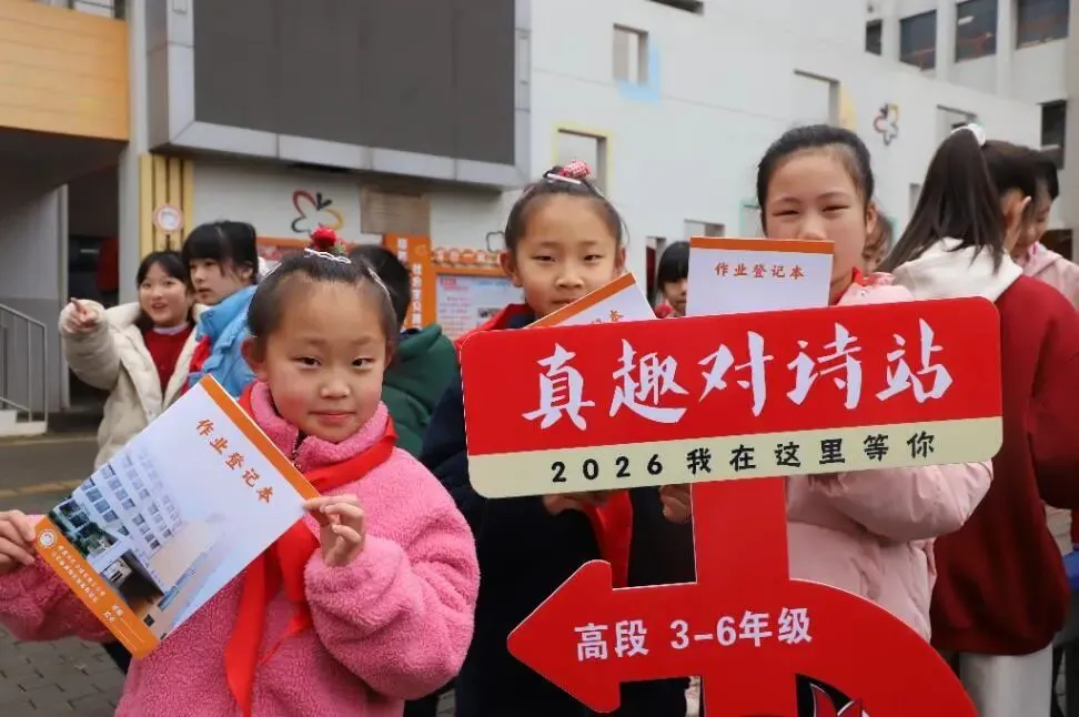 三至六年级的学生迎接的挑战是“马”主题古诗接龙。“乱花渐欲迷人眼,浅草才能没马蹄。”“何当金络脑,快走踏清秋。”……同学们从容接招,三句诗词信手拈来。即便偶有卡壳,“对诗官”也会耐心提示,现场书香浓郁,欢声笑语不断。