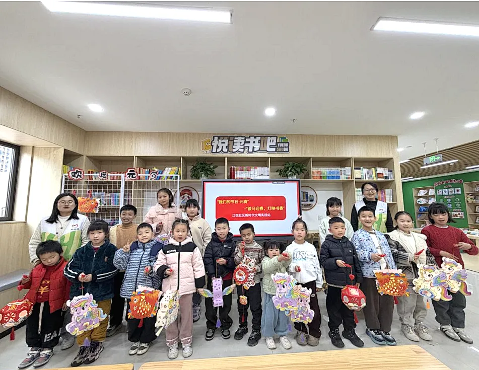 2月28日下午,江悦社区新时代文明实践站欢声笑语、热闹非凡,一场以“骏马迎春,灯映书香”为主题的元宵节活动正在这里温馨上演。来自辖区的30余名青少年儿童齐聚一堂,在书香与灯影中感受传统节日的独特魅力,共度了一段难忘的午后时光。