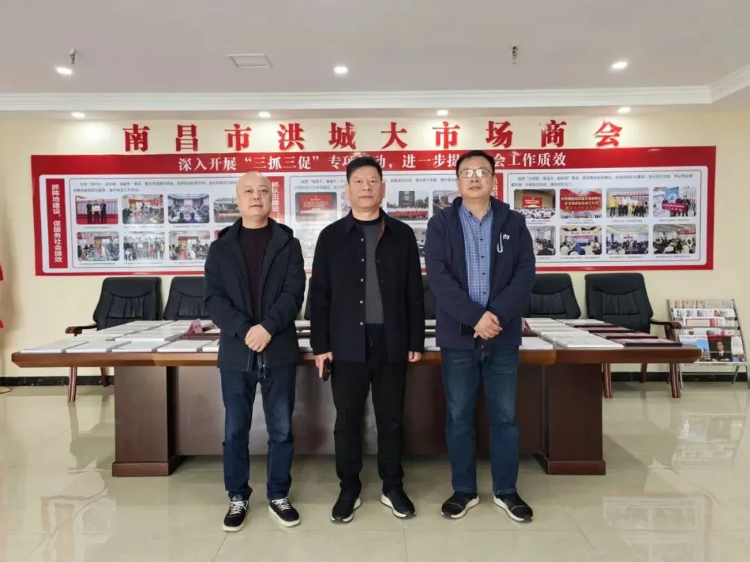 为深化商会间交流合作,借鉴优秀商会建设经验,近期,南昌市民营企业家商会会长杜毅、原执行会长祝海丰一行专程走访南昌市洪城大市场商会,与洪城大市场商会会长、江西洪大(集团)股份有限公司副总经理龚林,秘书长邵莉萍展开深度交流,共话商会建设心得,共探资源共享路径。