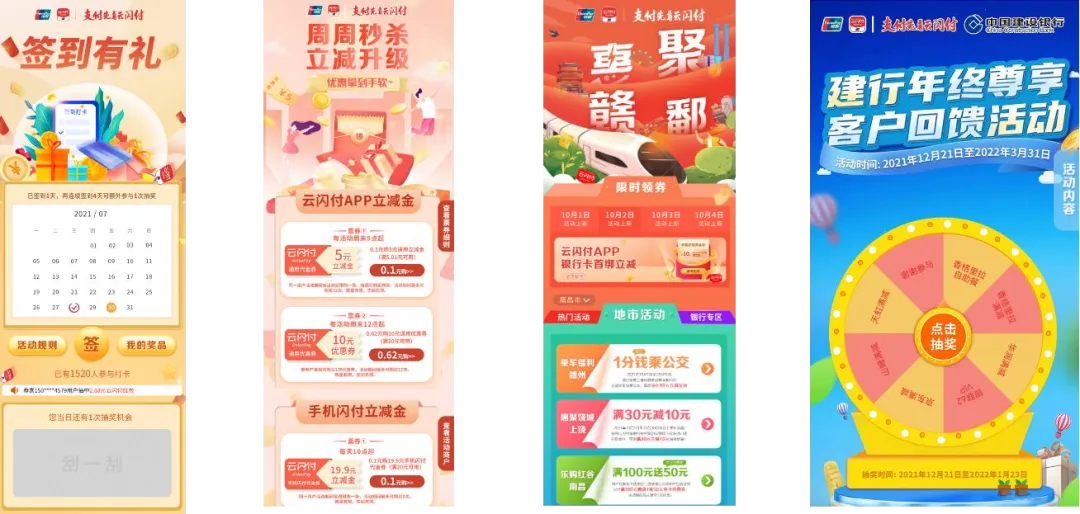 2020年,我司为江西银联策划、开发、运营云闪付拓新平台,解决权益发放、数据统计、任务分发问题,获得人民银行南昌中心支行支持,服务全省22家银行,10万名银行职工,300万消费者,获评中国银联总公司年度全国优秀项目。