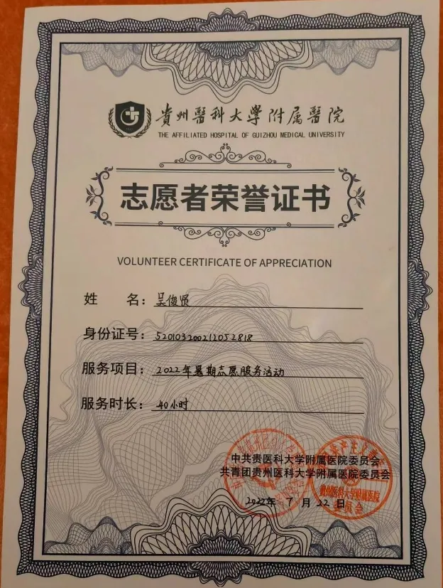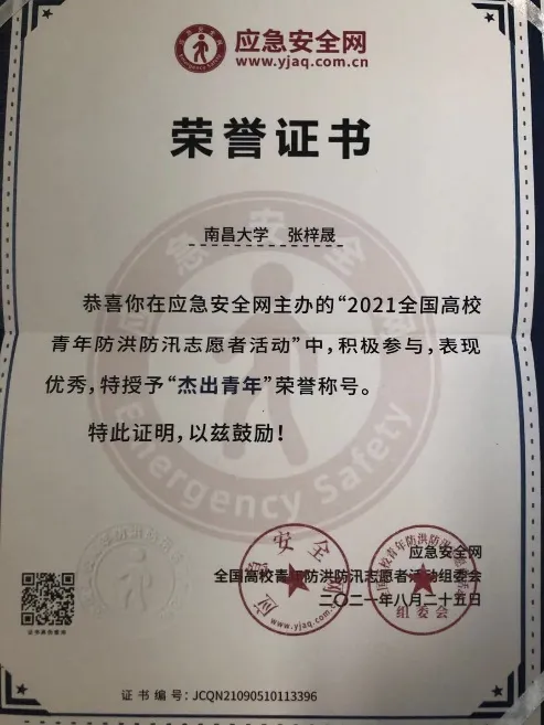 (图左为张梓晟同学在青年防洪防汛志愿者活动证书