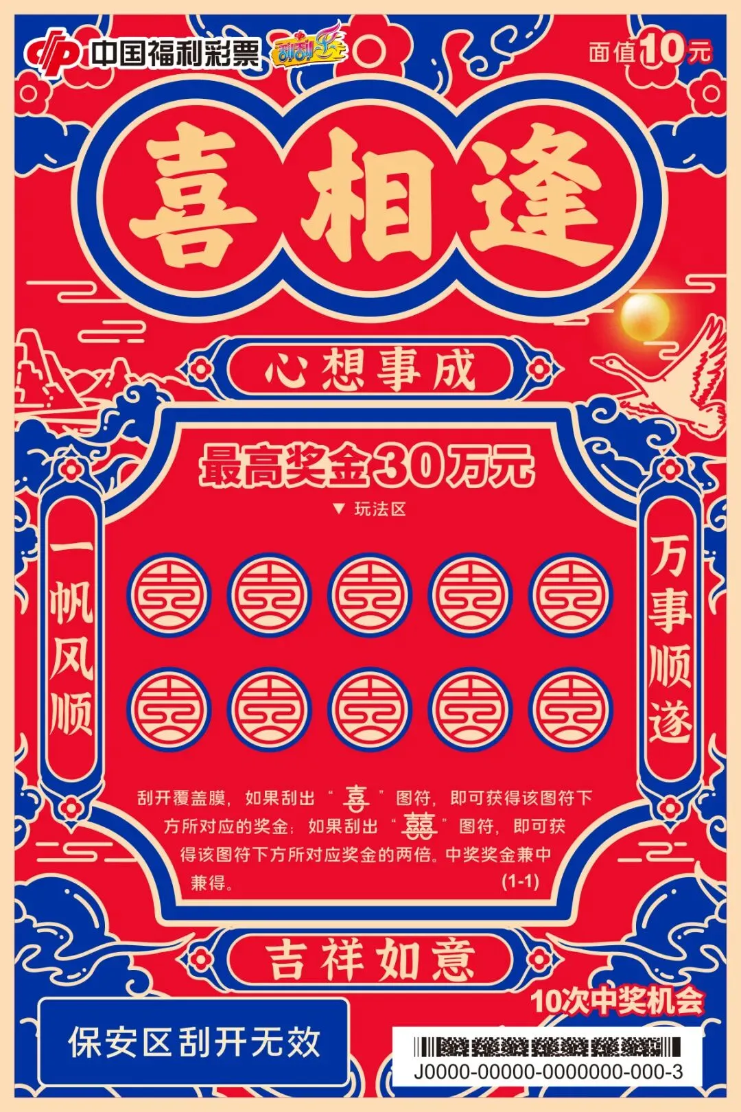 中奖票为10元“喜相逢”
