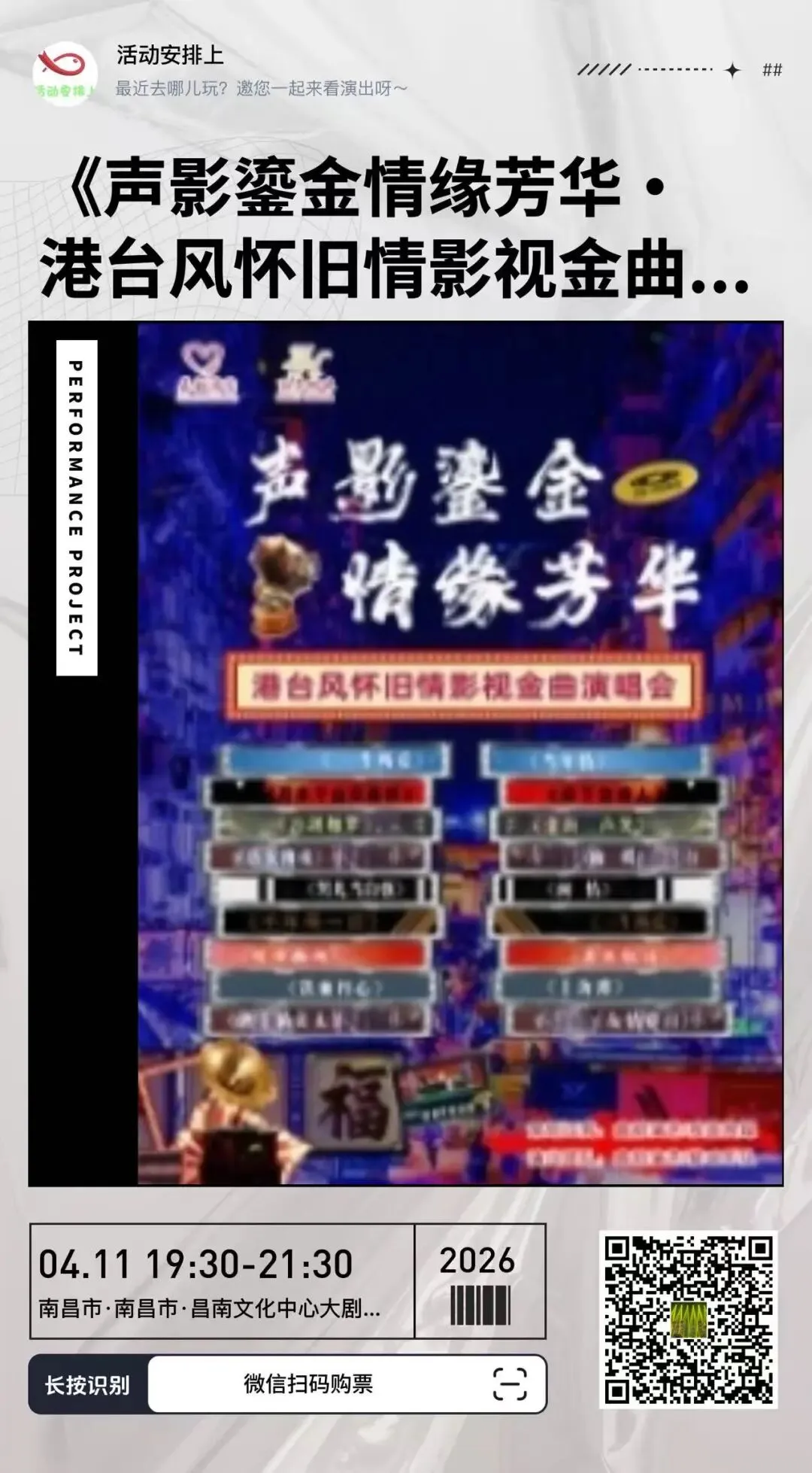 >【南昌2026.04.11】《声影鎏金情缘芳华·港台风怀旧情影视金曲演唱会》