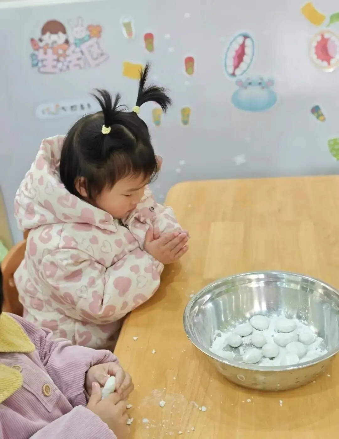 小中班的小宝贝们,新学期的第一份福气,从指尖开始。我们将糯米粉与温水揉成温柔的面团,把芝麻裹进团圆里,在食育课堂里解锁元宵节的甜蜜密码,每一颗圆滚滚的汤圆,都是宝贝们亲手攒下的春日福气。