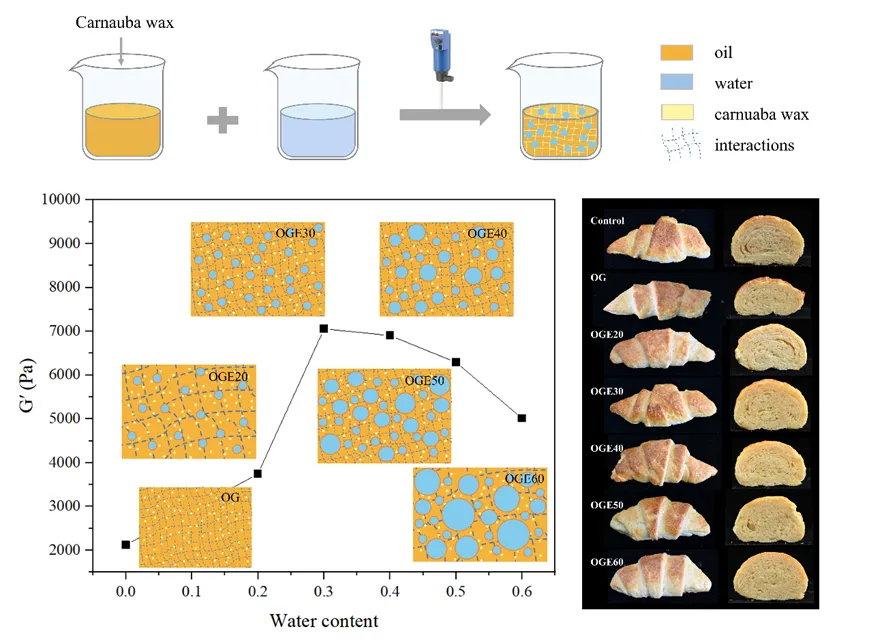 南昌大学张国文教授团队Food Chemistry发文:通过调控油水比定制油凝胶乳液网络结构用于可颂制作:对流变特性及成品质地的影响