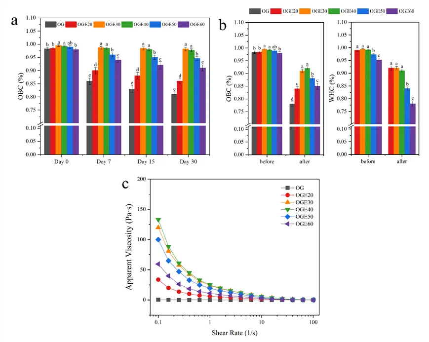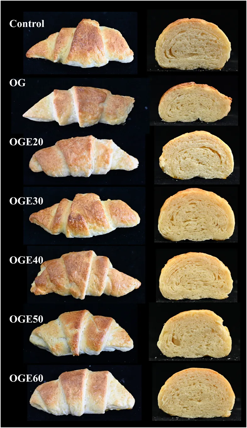 Fig. 4 Storage stability (a), thermal stability (b) , and apparent viscosity (c) of OG and OGEs with different aqueous phase fractions (0.20-0.60).Fig. 5 Appearance and cross-sectional images of croissants prepared using commercial shortening (control), OG and OGEs with aqueous phase fractions ranging from Φ = 0.20 to 0.60.https://doi.org/10.1016/j.foodchem.2026.148425
