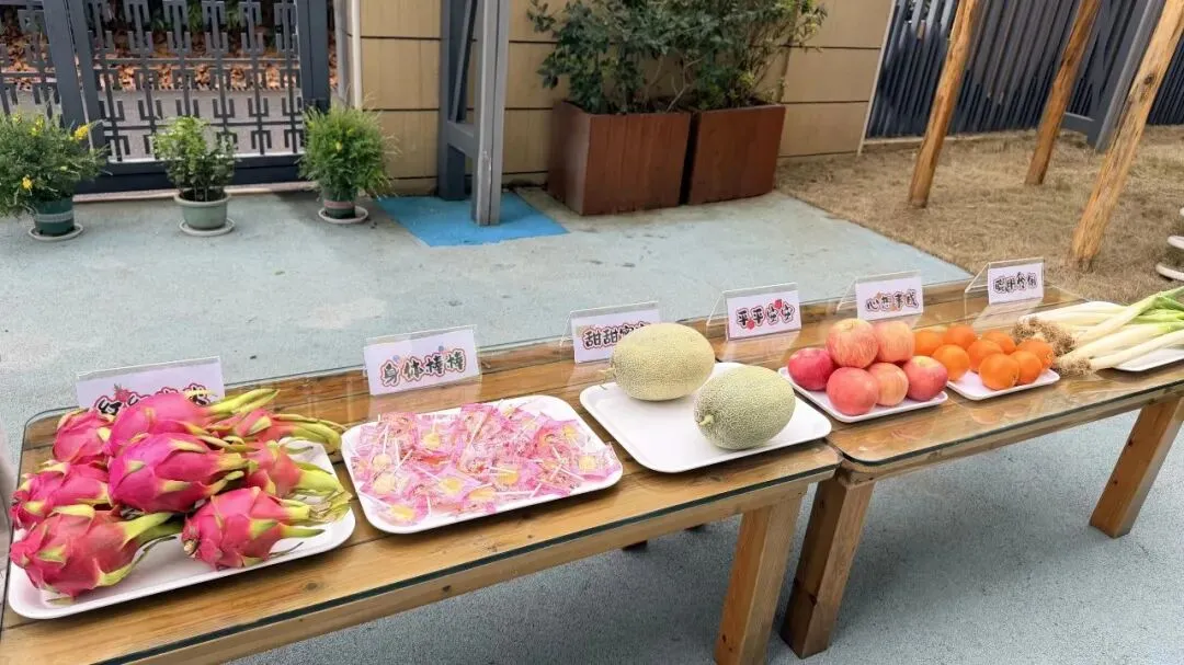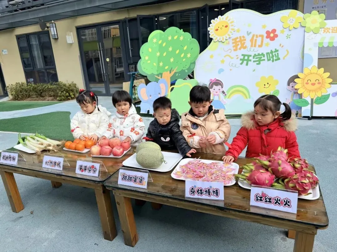 大葱、苹果、橙子、火龙果、哈密瓜摆满托盘,宝贝们小手轻轻触摸,在老师的温柔讲解中,知晓“摸大葱聪明伶俐、摸苹果平平安安、摸橙子心想事成”的美好寓意,把满满的福气和期许都握在手心。