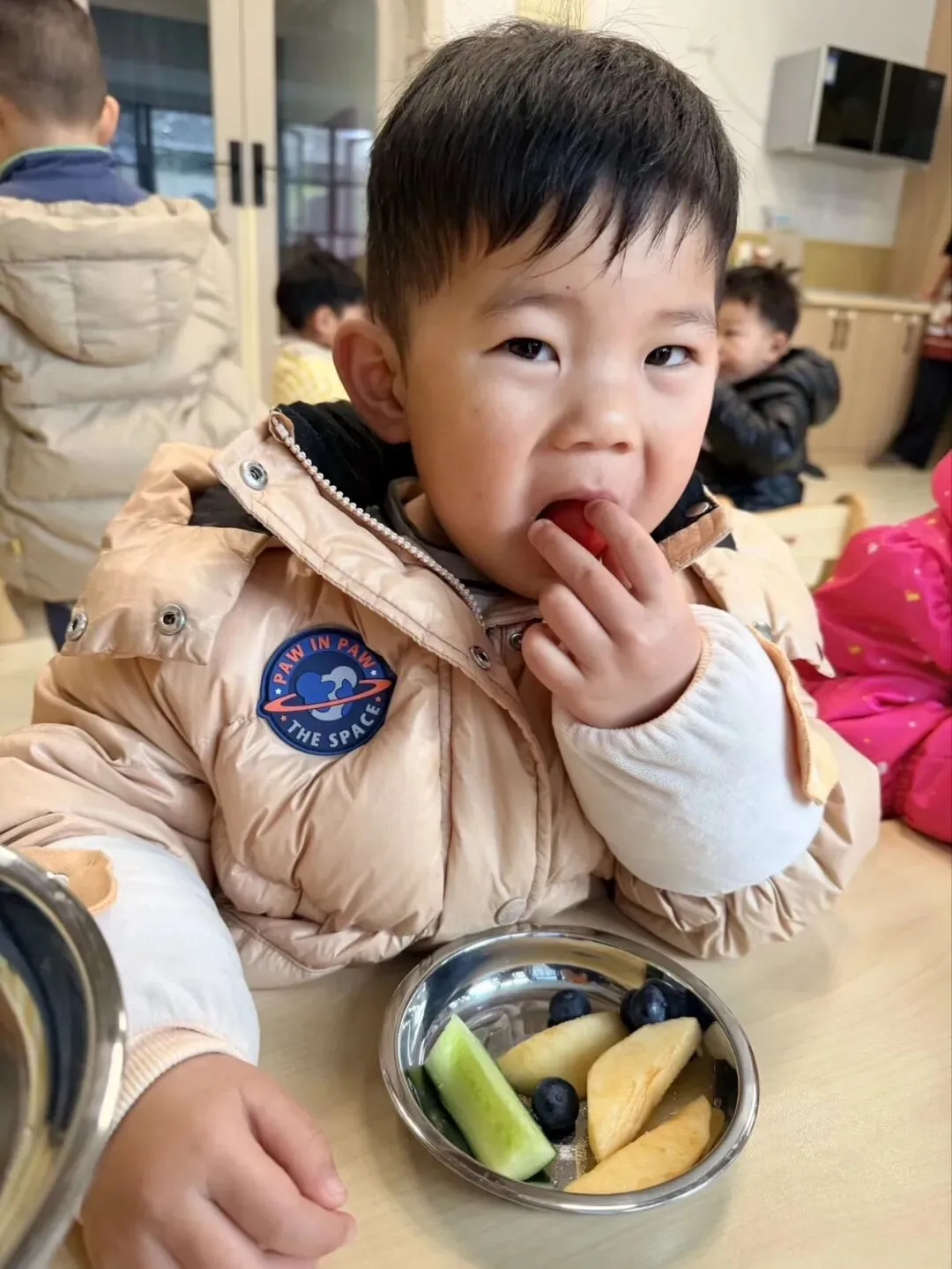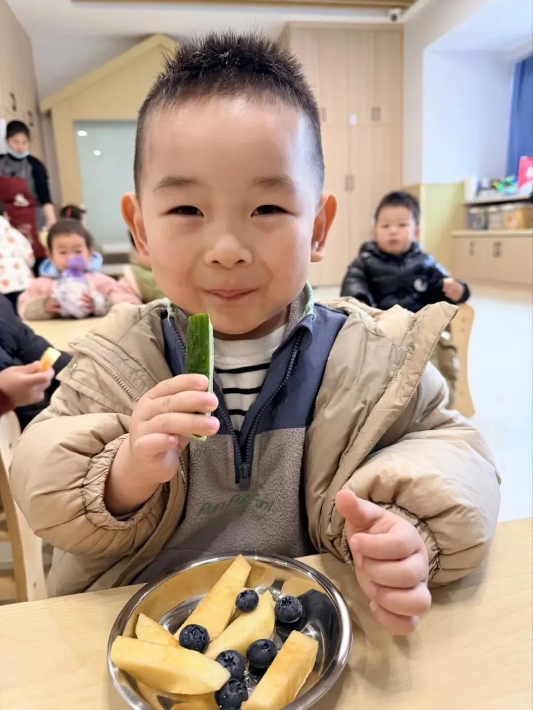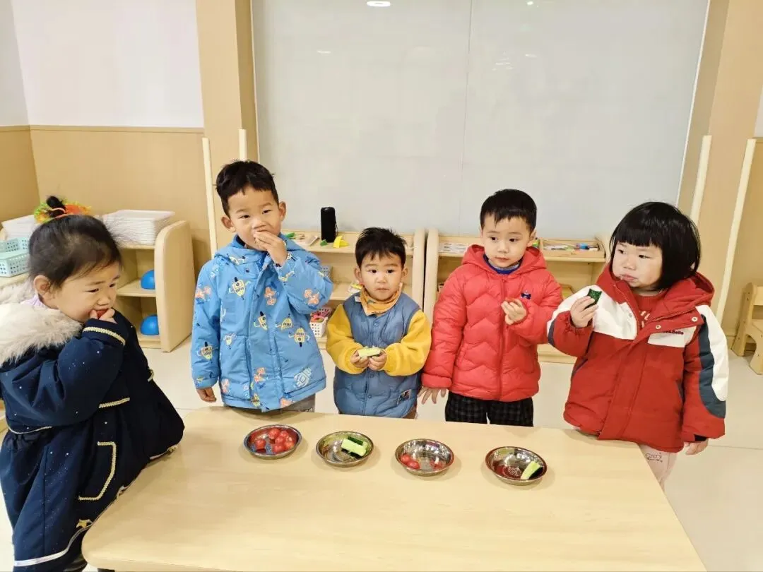 春日时令的黄瓜、圣女果、橙子清甜爽口,宝贝们细细品尝,用舌尖感受春天的生机与活力。在“咬春”的传统习俗中,祈愿宝贝们在春日里茁壮成长,时刻活力满满。
