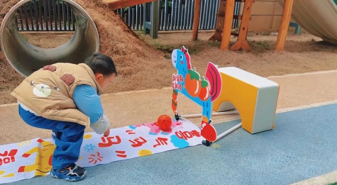 宝贝们化身小小投手,双手将皮球推向瓶宝宝,击倒的瞬间,全场响起“马到成功!福气满满!”的欢呼声,欢声笑语里,美好祝福萦绕在每个宝贝心间。