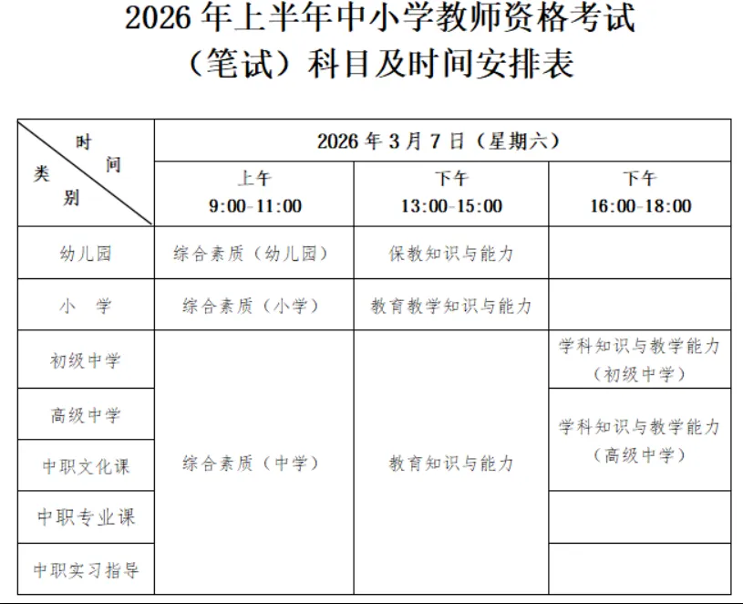 2026年上半年中小学教师资格考试笔试将于3月7日举行,为使广大考生平安顺利参加考试,温馨提示如下。