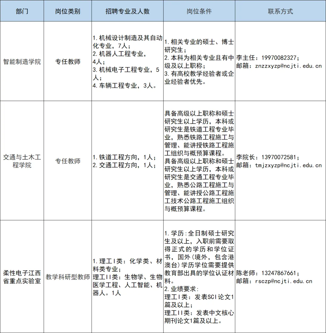 邮件格式:岗位+应聘部门+毕业院校+姓名学历+所学专业(例如:专任教师+智能制造学院+某某大学+张某某硕士+车辆工程专业)。请在简历中列出您的工作经历及科研业绩。