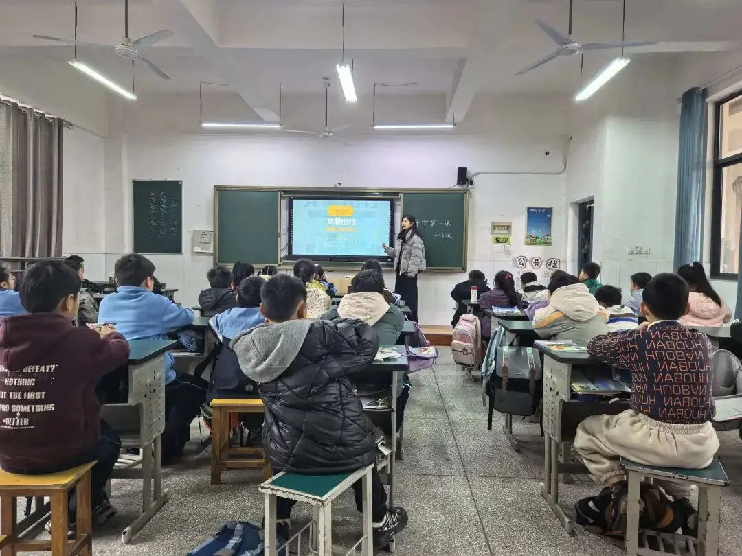 为进一步规范学生上下学秩序,强化文明出行意识,我校专门开展文明出行主题教育课。课堂上,老师们结合校园实际,细致讲解排队礼仪、行走规范、公共场所文明要求,引导同学们自觉遵守秩序、礼让他人、爱护环境,从一言一行做起,养成文明出行的好习惯。