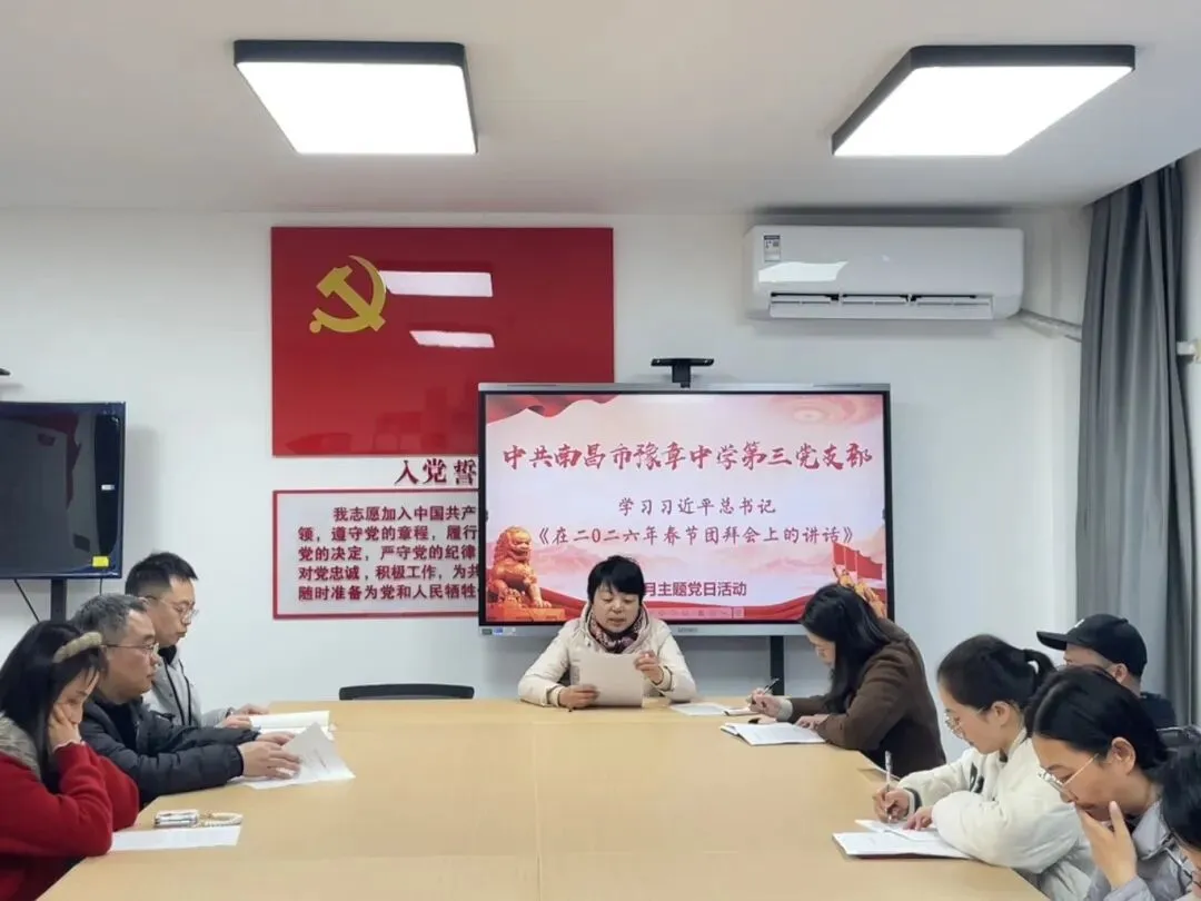 春潮澎湃,奋进扬帆。为凝聚合力、激发干劲,引导党员以 “自信、发奋、齐心” 的精神状态投身工作,2月28日上午11点,南昌市豫章中学各党支部如期开展2026年2月主题党日活动,全体党员齐聚一堂,以学铸魂、以评促干,切实把中央决策部署和省委、市委工作要求转化为育人实效。