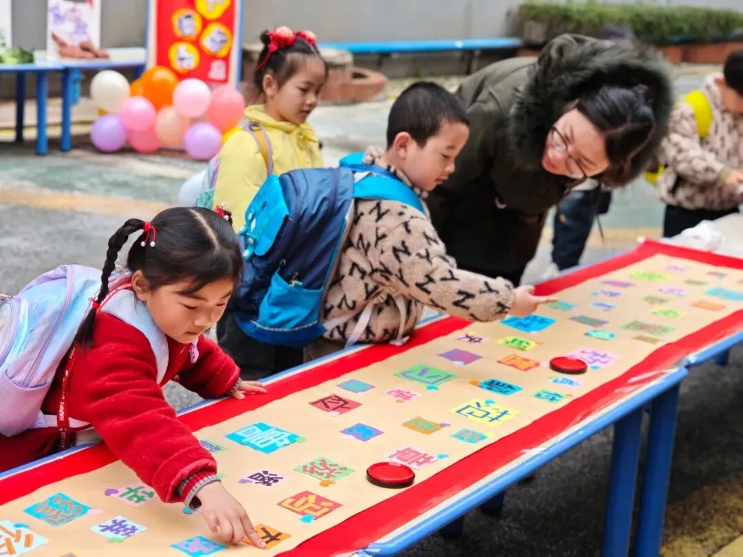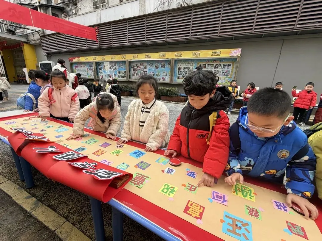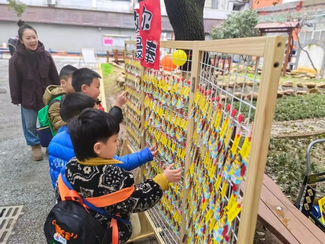 童趣签到,幸福添喜。孩子们郑重地在自己的姓氏旁按下一个个红红的小手印,如同春日里绽放的花朵,寓意着红福相伴,成长起航。
