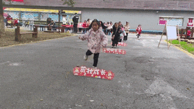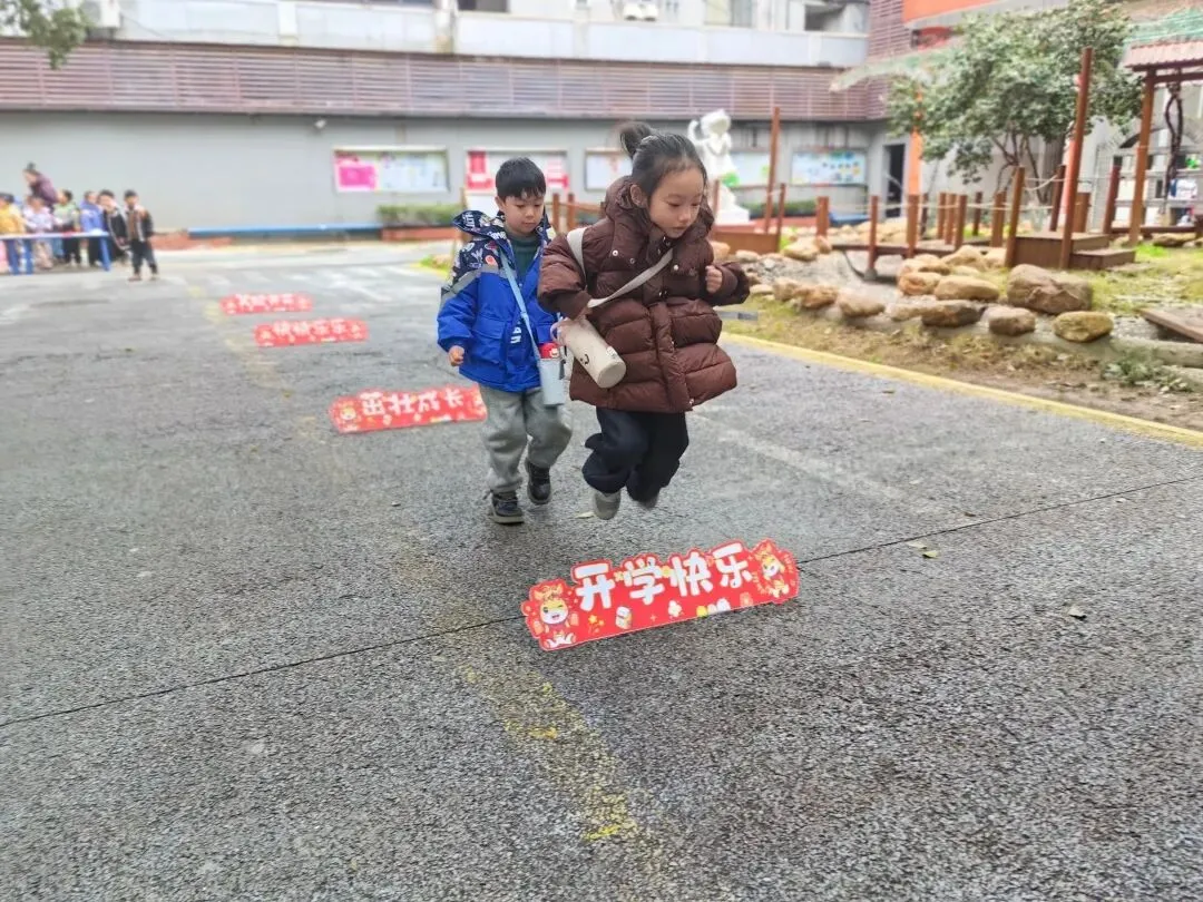 瞧,铺满祝福语的趣味通道上,跃动着一个个雀跃的小身影,一步一祝福,一蹦一好运,福气运气满满当当。