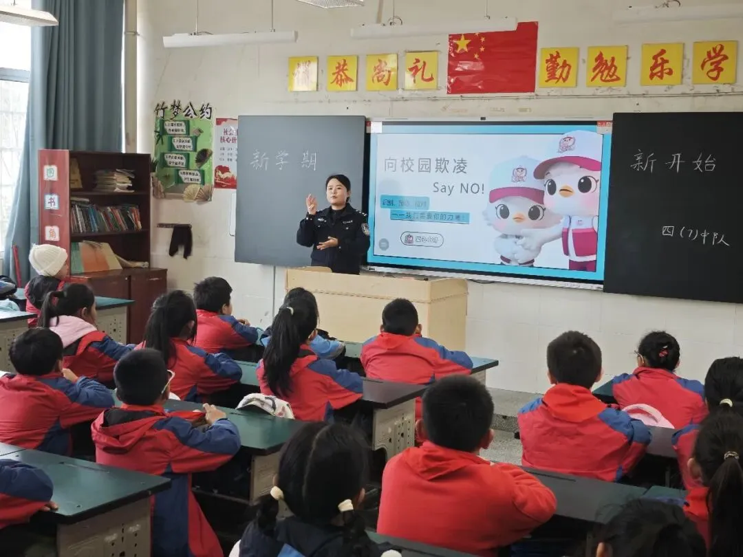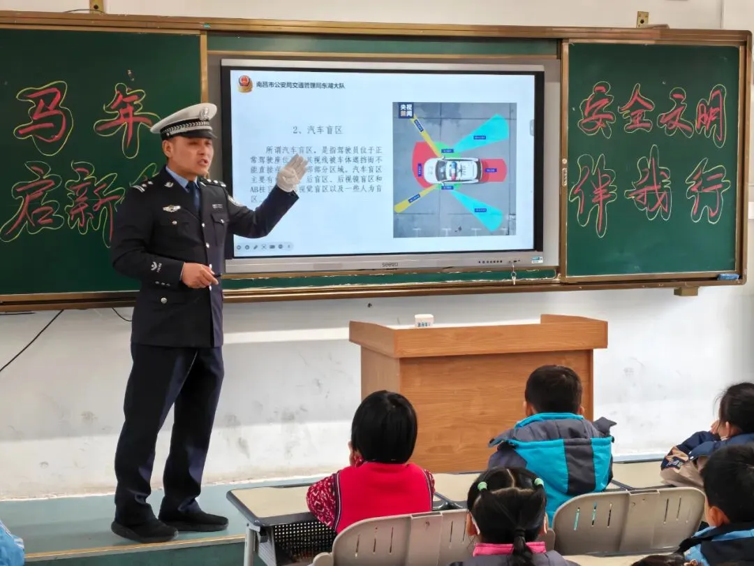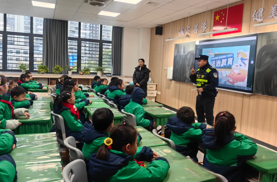守护平安,不仅要靠坚守,更要让安全的种子在孩子们心中生根发芽。湾里分局民警担任辖区中小学法治副校长,走进课堂普及反诈、禁毒、防欺凌等法律知识,用专业与亲和力,为孩子们系好新学期的第一粒“安全扣”。