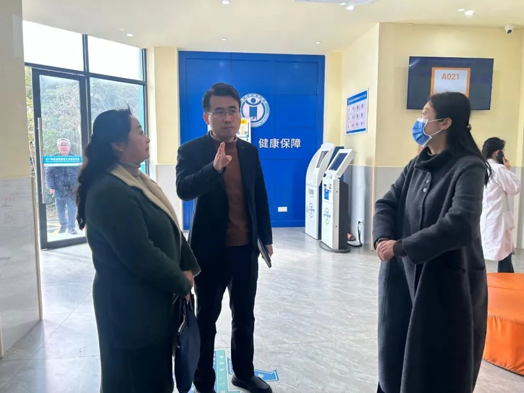 中医馆内,浓郁的中医药文化氛围扑面而来,交流团成员驻足查看了针灸、推拿、艾灸等中医适宜技术的开展情况,认真询问了中医馆的运营模式、特色疗法及群众反馈,对艾溪湖卫生院将传统中医药与现代康复技术结合的做法表示赞赏。在慢病管理中心,大家重点了解了高血压、糖尿病等慢性病的“筛查-干预-随访”全流程管理模式,查看了健康档案信息化管理系统,对中心“医防融合”的服务理念和家庭医生团队的精细化服务给予高度评价。