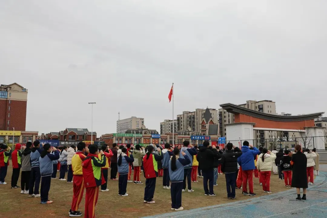 迎着晨光,开学典礼在庄严的升旗仪式中拉开帷幕。五星红旗冉冉升起,全体师生肃立行注目礼,爱国情怀在每个人心中激荡,新学期的奋进号角正式吹响。