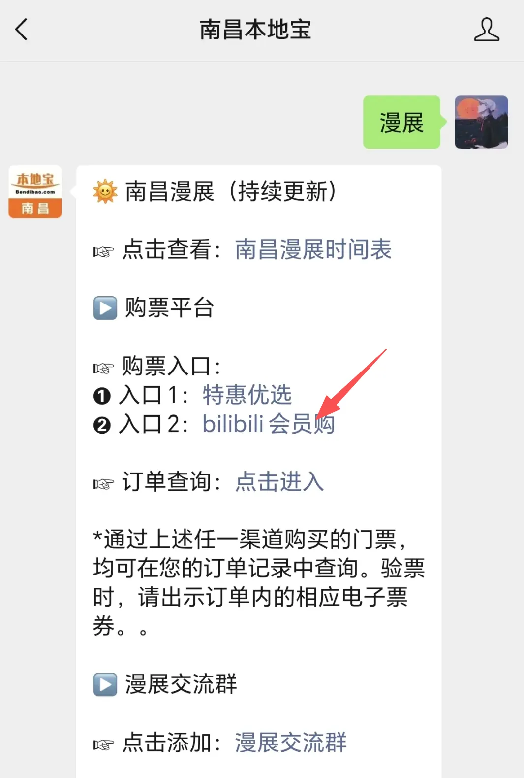 在微信对话框回复【漫展】