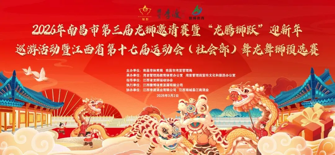 2026年3月2日下午,由南昌市体育局、湾里管理局联合主办的2026年南昌市第三届龙狮邀请赛暨“龙腾狮跃”迎新年巡游活动暨江西省第十七届运动会(社会部)舞龙舞狮预赛在湾里岭秀湖北广场隆重举行。