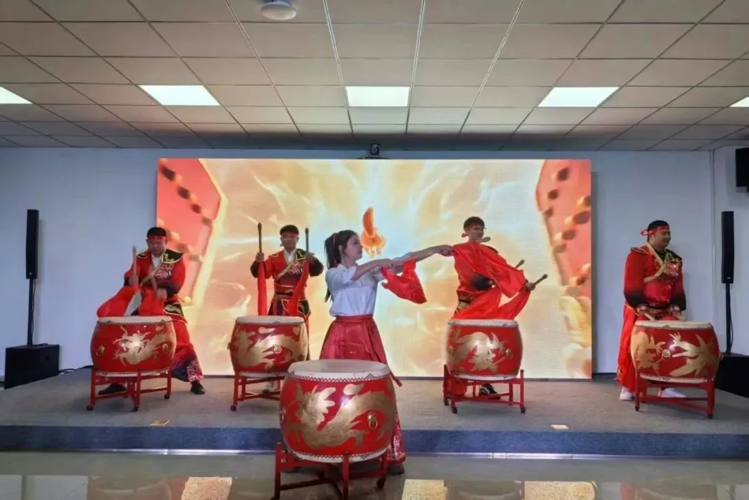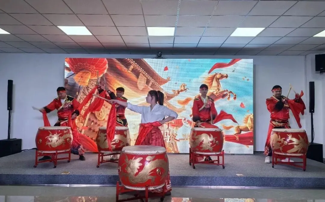 联欢会精心策划了14个精彩节目,令人目不暇接。气势恢宏的鼓舞表演、幽默诙谐的小品、精彩纷呈的歌舞、威风凛凛的舞狮、深情的朗诵,让现场观众沉浸其中……在节目表演过程中,还穿插了激动人心的抽奖环节,一轮轮的幸运揭晓让现场惊喜连连,欢呼声此起彼伏,整场联欢会洋溢着热烈欢快的气氛。