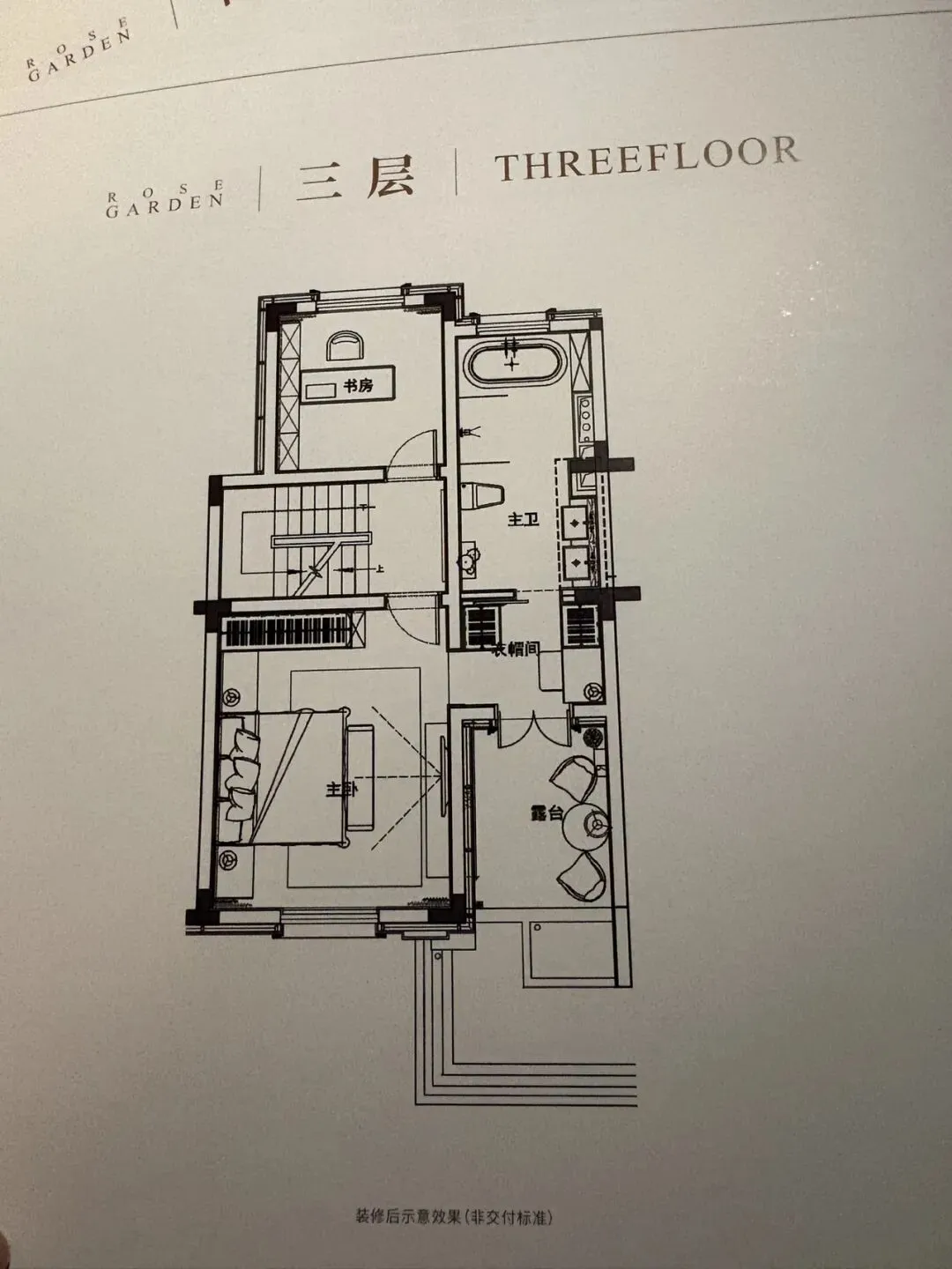 实体样板间做的是220平端厅别墅,给我感觉不错,玫瑰园的别墅一共3层,带一个阁楼。