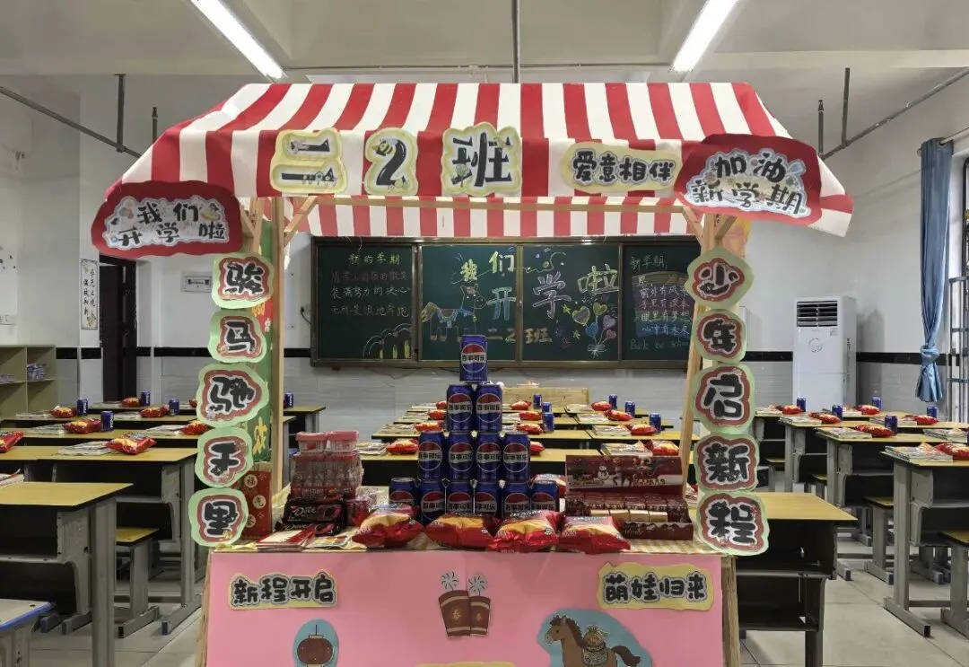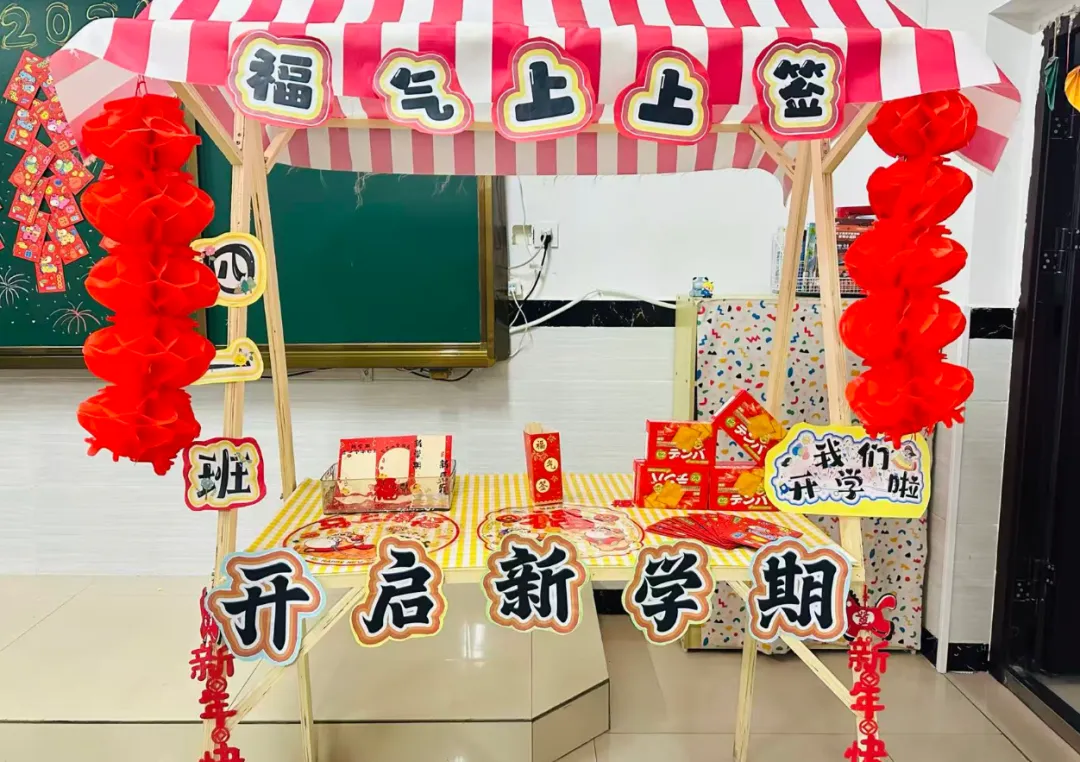 为迎接学子归来,全体教师提前忙碌筹备,为每个班级打造了独具特色的福气惊喜小车。色彩缤纷的装饰、满载祝福的福签、温馨别致的场景布置,让整个校园洋溢着喜庆、温馨、向上的浓厚氛围。每一处精心的点缀,都饱含着学校与老师对孩子们最真挚的关爱与期盼,让每一位同学一进校园便感受到家一般的温暖。