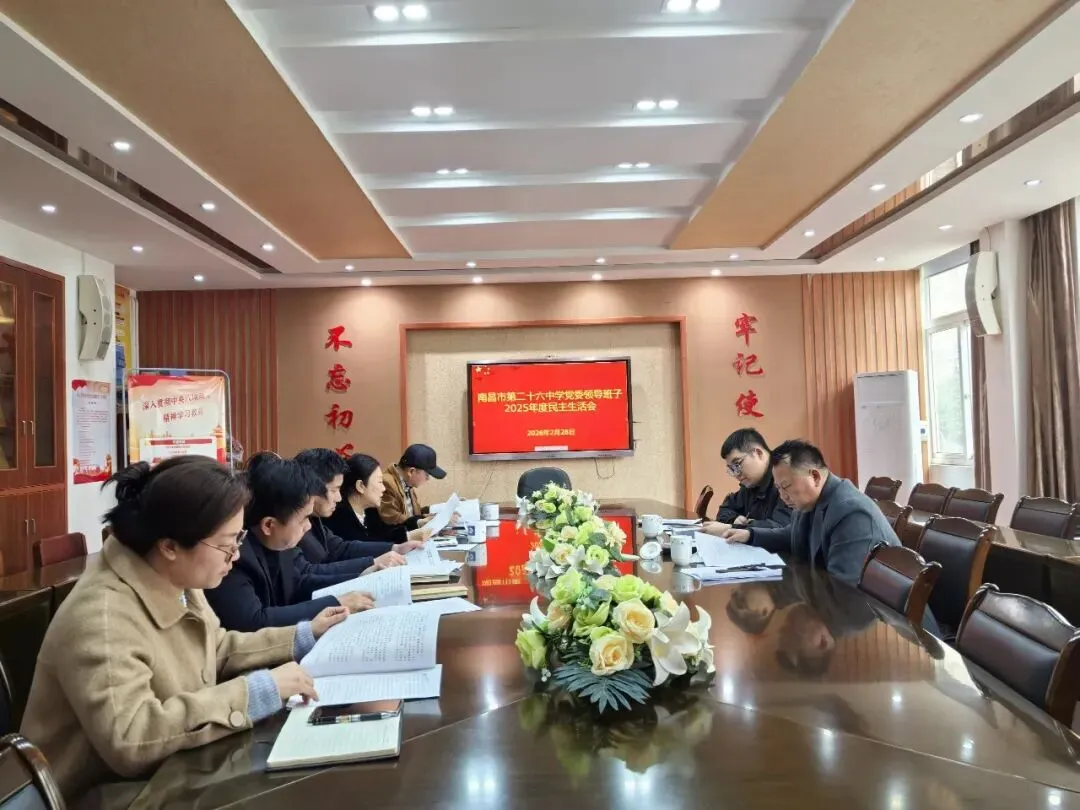 2月28日下午,南昌二十六中党委召开2025年度民主生活会。会议精准把握发扬党内民主、加强党内监督、依靠领导班子自身力量解决矛盾问题的功能定位,检视差距、剖析党性、开展批评与自我批评。市委教育工委第七督导组组长朱道清一行两人到会指导并作点评讲话,学校全体班子成员参加会议。