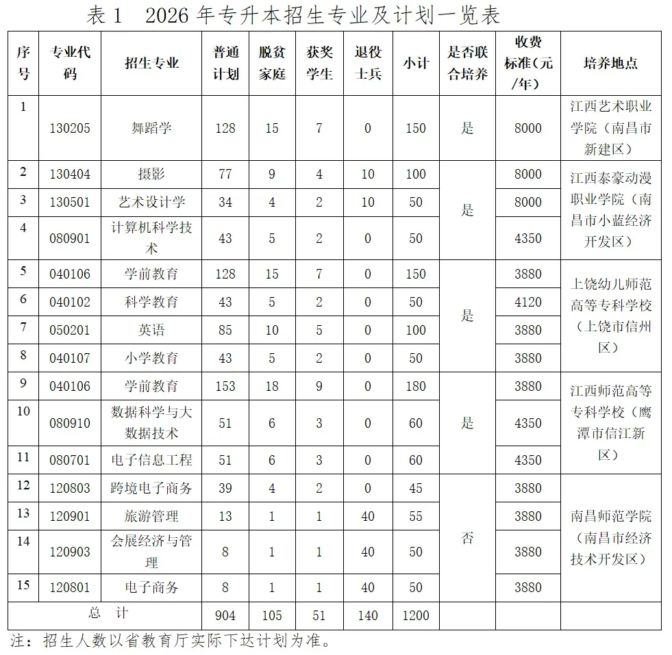 6.专项计划学生录取实行计划单列政策。退役大学生士兵录取工作按照《江西省退役大学生士兵专升本免试招生工作要求》要求执行。