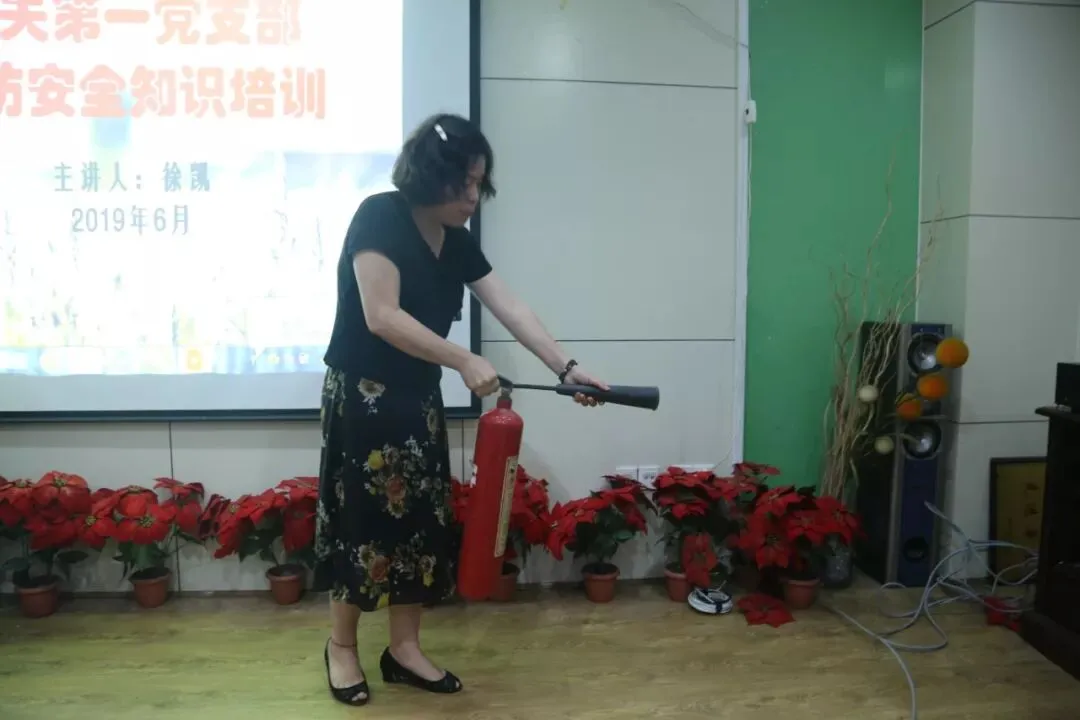 活动还邀请了中级国家消防员徐凯同志为全体党员进行消防知识专题培训,徐凯就灭火器使用步骤、方法原理、适用范围,消防水枪、水带的正确连接,防毒面具的使用等进行了细致的讲解和现场演示,还对家庭消防安全常识,火灾逃生技巧等知识进行了普及。