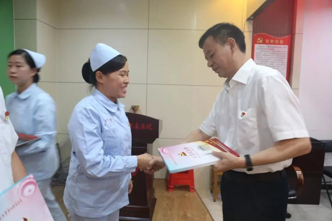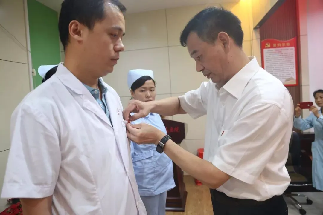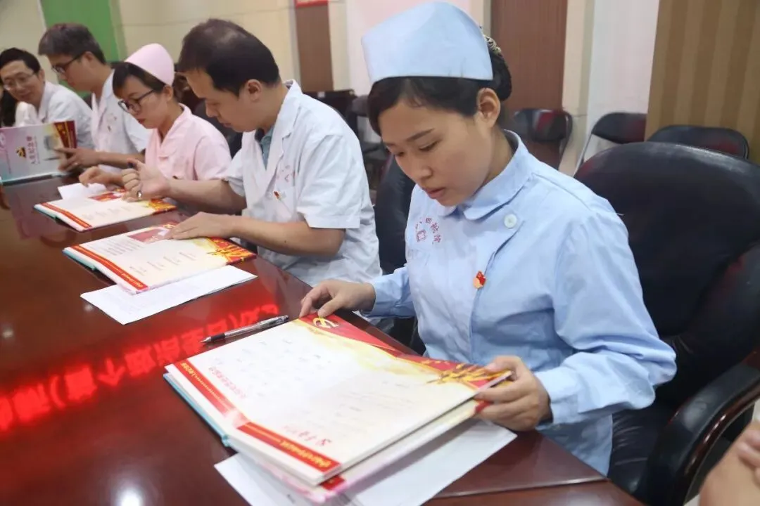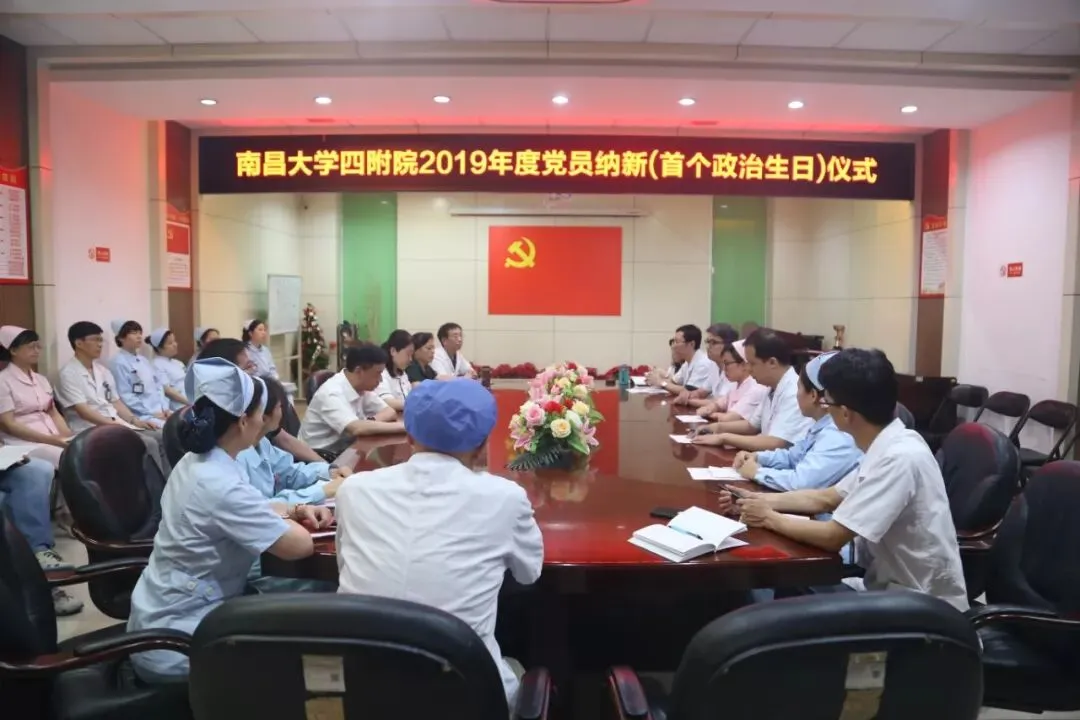 6月25日,正值中国共产党成立98周年之际,南昌大学第四附属医院举行首届党员纳新仪式,为2019年按期转正的5名党员过首个政治生日。