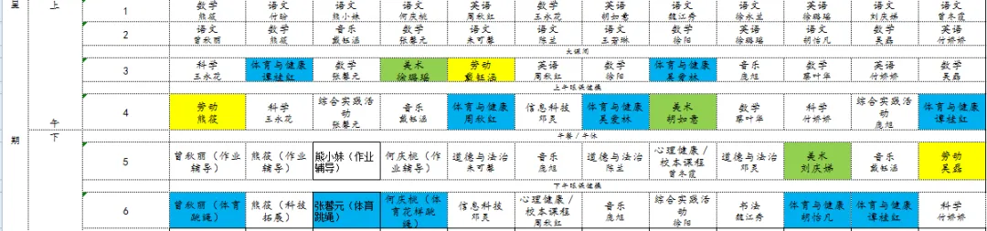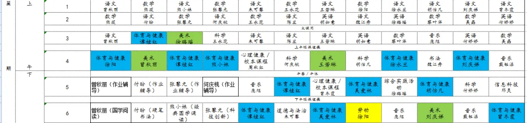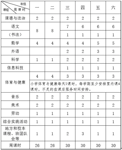 为深入贯彻落实《中共江西省委 江西省人民政府关于全面加强新时代大中小学劳动教育的实施意见》、《中共江西省委办公厅 江西省人民政府办公厅印发<关于全面加强和改进新时代学校体育工作的实施方案>和<关于全面加强和改进新时代学校美育工作的实施方案>的通知》等文件精神,进一步严格落实体育、美育、劳动教育课程开设刚性要求,按照国家课程方案和课程标准,开齐开足上好体育美育课,不减少、不挤占体育、美育、书法、劳动教育课时,坚持“双减”落地,“五育”并举,全面促进学生发展。现将本学期课表进行公示,并自觉接受家长和社会各界的监督。
