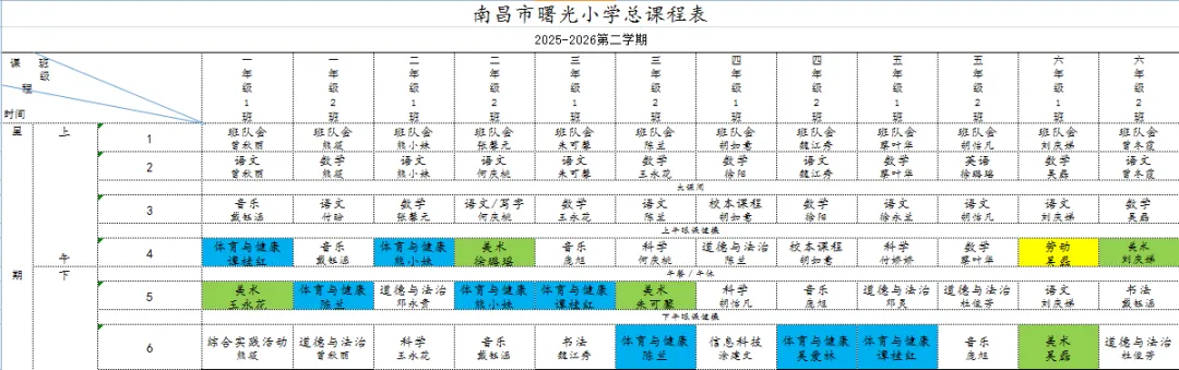 【初阳教育】南昌市曙光小学2025-2026学年第二学期“晒课表”啦!
