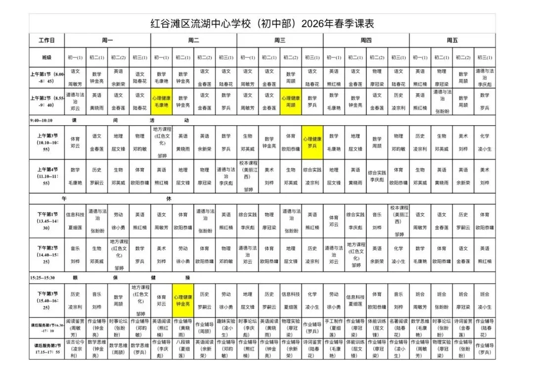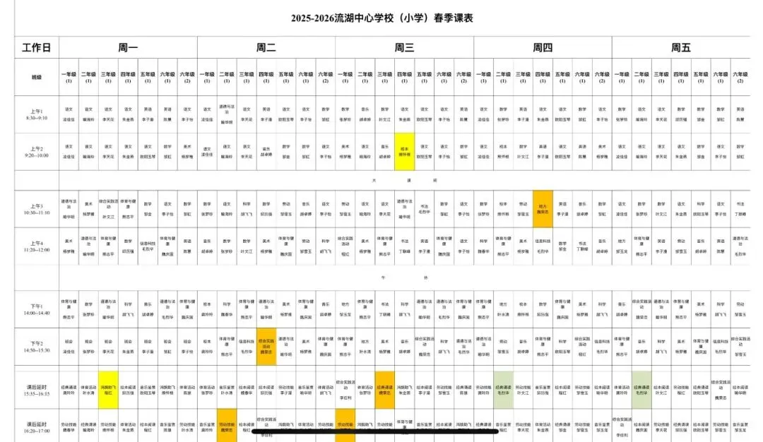 落实五育并举 促进全面发展|南昌市红谷滩区流湖中心学校晒课表啦