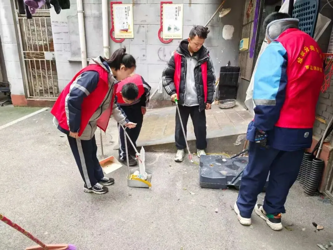 2026年3月3日元宵节下午,南昌中学民德路校区团委组织10余名学生志愿者走进白马庙社区,开展"学雷锋月"主题志愿服务活动。志愿者们以清扫社区环境、慰问高龄居民的实际行动,为传统佳节增添温暖底色,践行新时代雷锋精神。