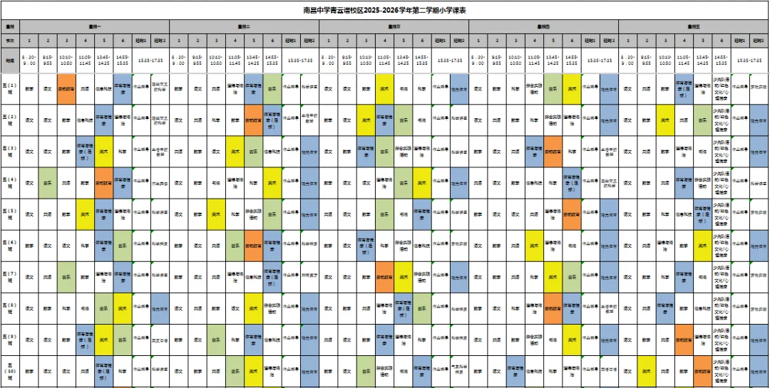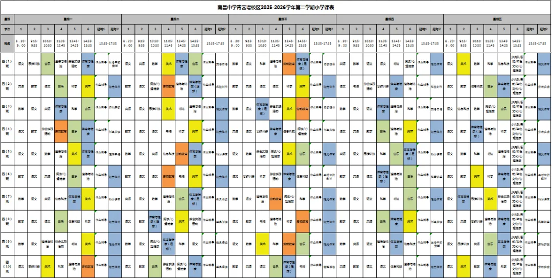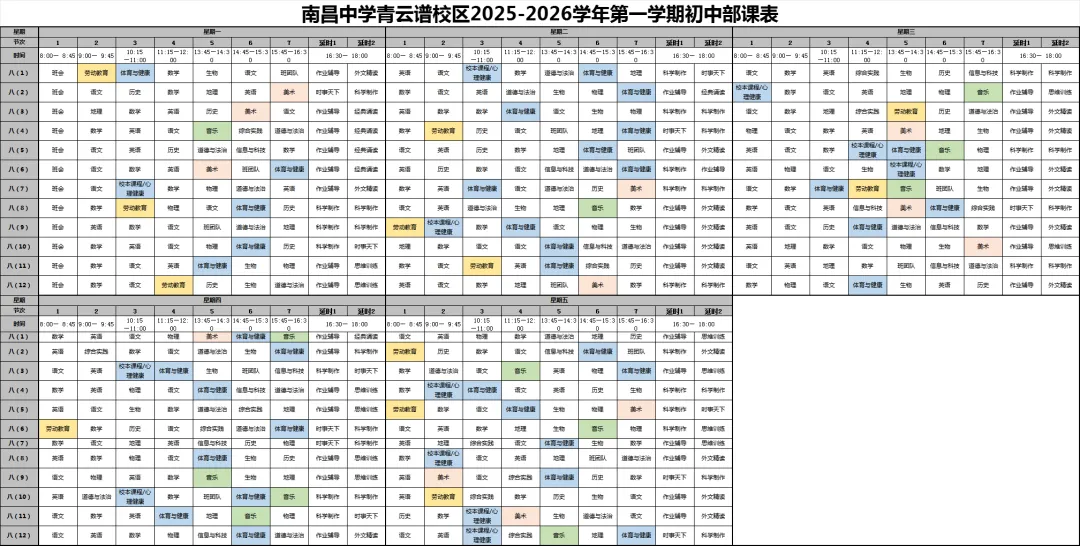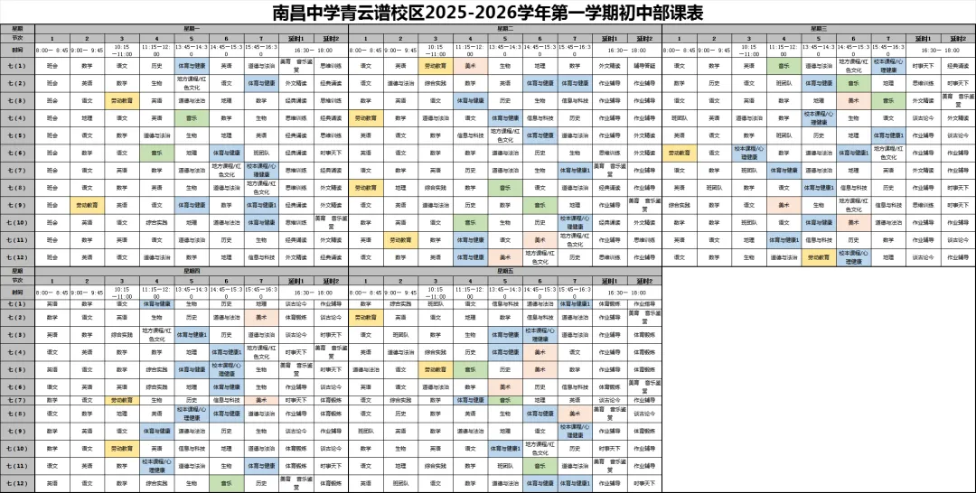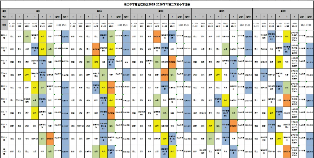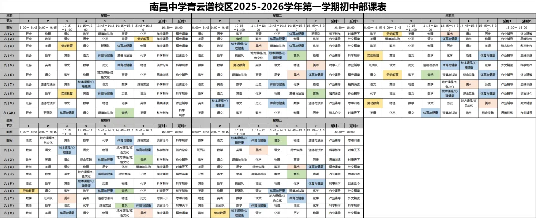 【青云教育 日新教学】南昌中学教育集团青云谱校区晒课表啦!