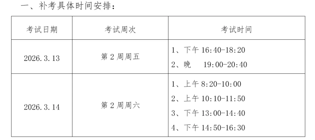 1. 补考范围:不及格、获准缓考课程可补考;舞弊、缺考、取消资格者不安排补考