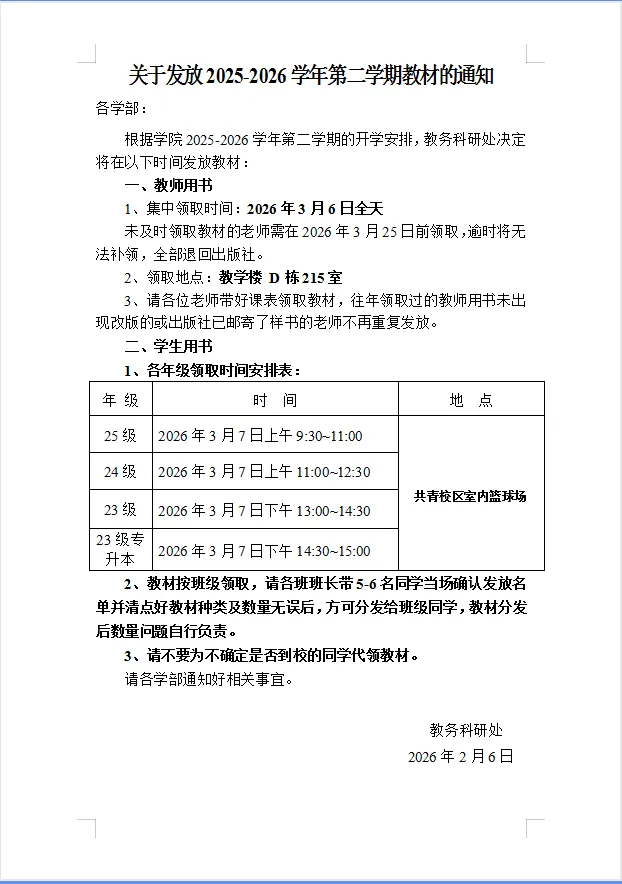 请各位班长组织好班委小分队,带着各寝室的小伙伴们一起去领课本,记得清点清楚,别再让书本“走丢”啦!