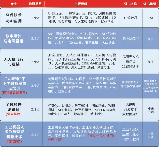 本期培训班紧扣数字经济产业需求,结合退役军人政治坚定、纪律严明、执行力强的群体优势,开设六大核心培训方向,配套专属实训场地与专业师资。