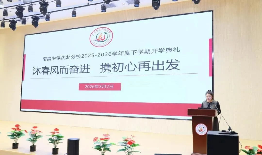 春归万物生,奋进正当时。当暖风吹散寒意,当晨光点亮校园,南昌中学沈北分校的学子们载着期许与憧憬,踏着春光奔赴新程。3月2日下午,学校二楼报告厅内暖意融融、士气昂扬,全体师生齐聚一堂,隆重举行2026年春季学期开学典礼,以庄重的仪式感,开启新学期的新征程。