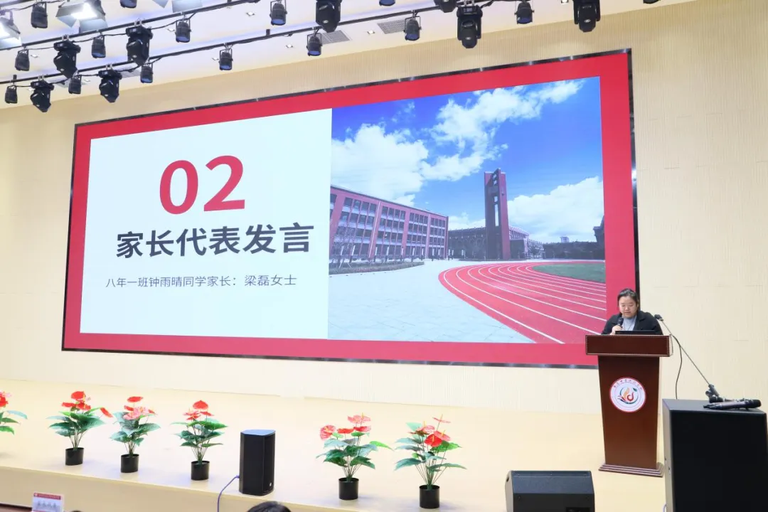 家校同心,方能致远;携手同行,共育花开。家长代表钟雨晴家长受邀登台,她以温情的话语,表达了对学校工作的认可与感谢,也对孩子们提出了殷切的期望,希望孩子们在新学期里不负师恩、不负韶华,学会感恩、勇于担当,在校园这片沃土上茁壮成长。家校携手的温暖,为孩子们的成长筑牢了坚实的后盾。