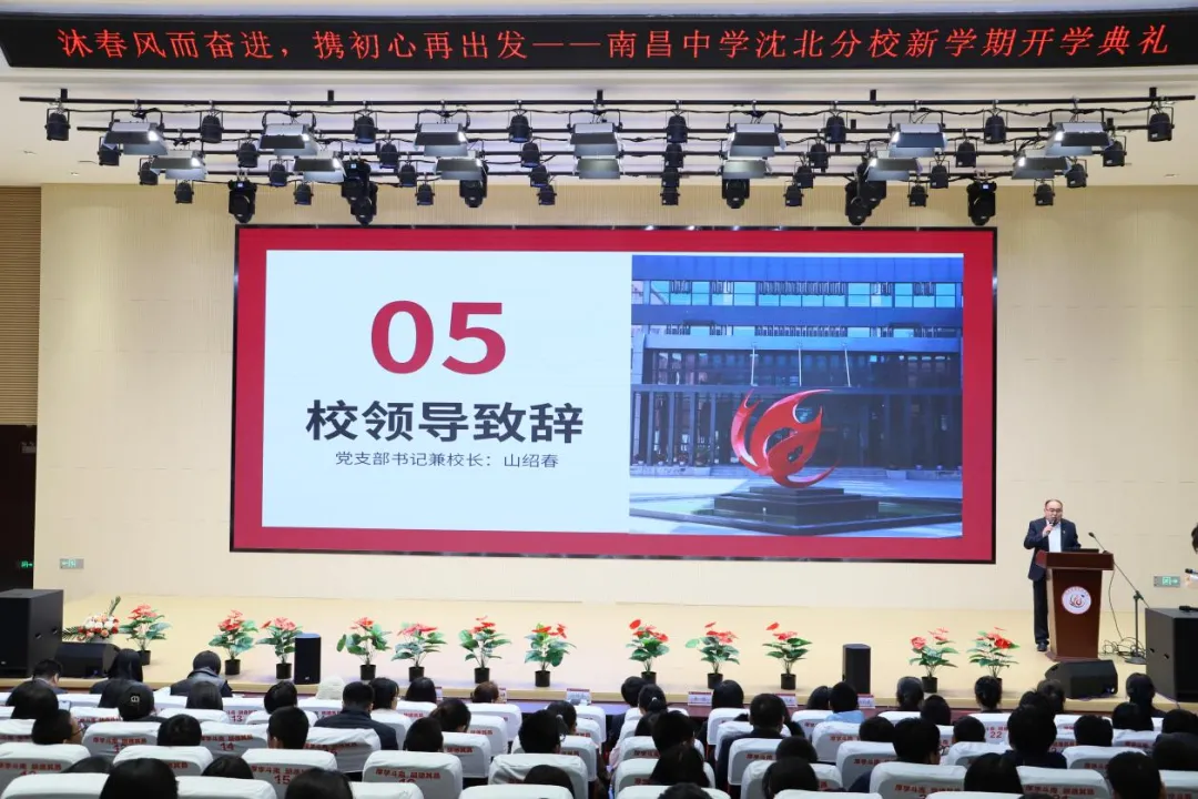 殷殷嘱托,指引方向;声声寄语,凝聚力量。南昌中学沈北分校党支部书记兼校长山绍春登台致辞,回顾了学校过往的辉煌成就,肯定了全体师生的辛勤付出,同时也对新学期的工作与学习提出了明确的要求与美好的期许。山校长的话语,既有对过往的总结,也有对未来的展望,更有对全体师生的深切关怀,激励着每一位南昌学子以昂扬的斗志、务实的作风,奔赴属于自己的星辰大海。
