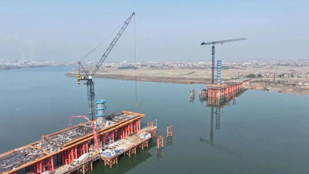 截至目前,汇贤大桥桥梁下部结构和引桥上部结构已全部施工完成,工程建设已全面转入主桥施工的关键阶段。当前,项目团队正集中优势力量,全力推进主桥边跨混凝土箱梁和主墩上塔柱的施工作业,为后续重大节点奠定坚实基础。根据计划,项目将力争在2026年5月开始架设主跨钢混组合梁。