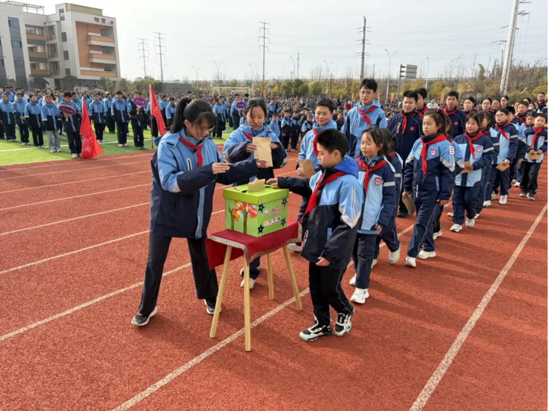心愿寄远方,少年逐梦行。各班学生提前精心书写心愿卡,承载着成长期许与奋斗目标,各年级选派学生代表依次上台,郑重将心愿卡投入心愿箱,让美好心愿在此封存,以坚定信念奔赴新程,静待时光浇灌梦想开花。