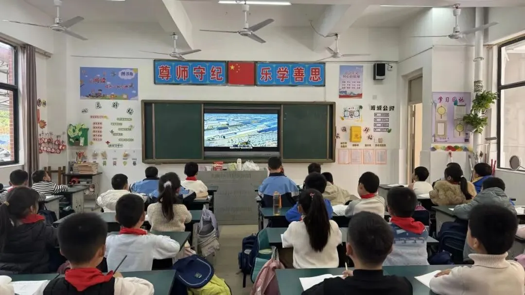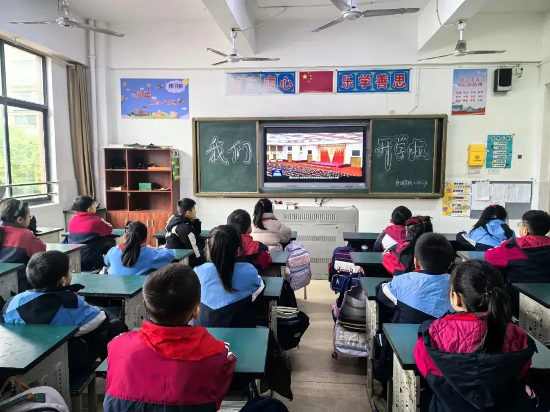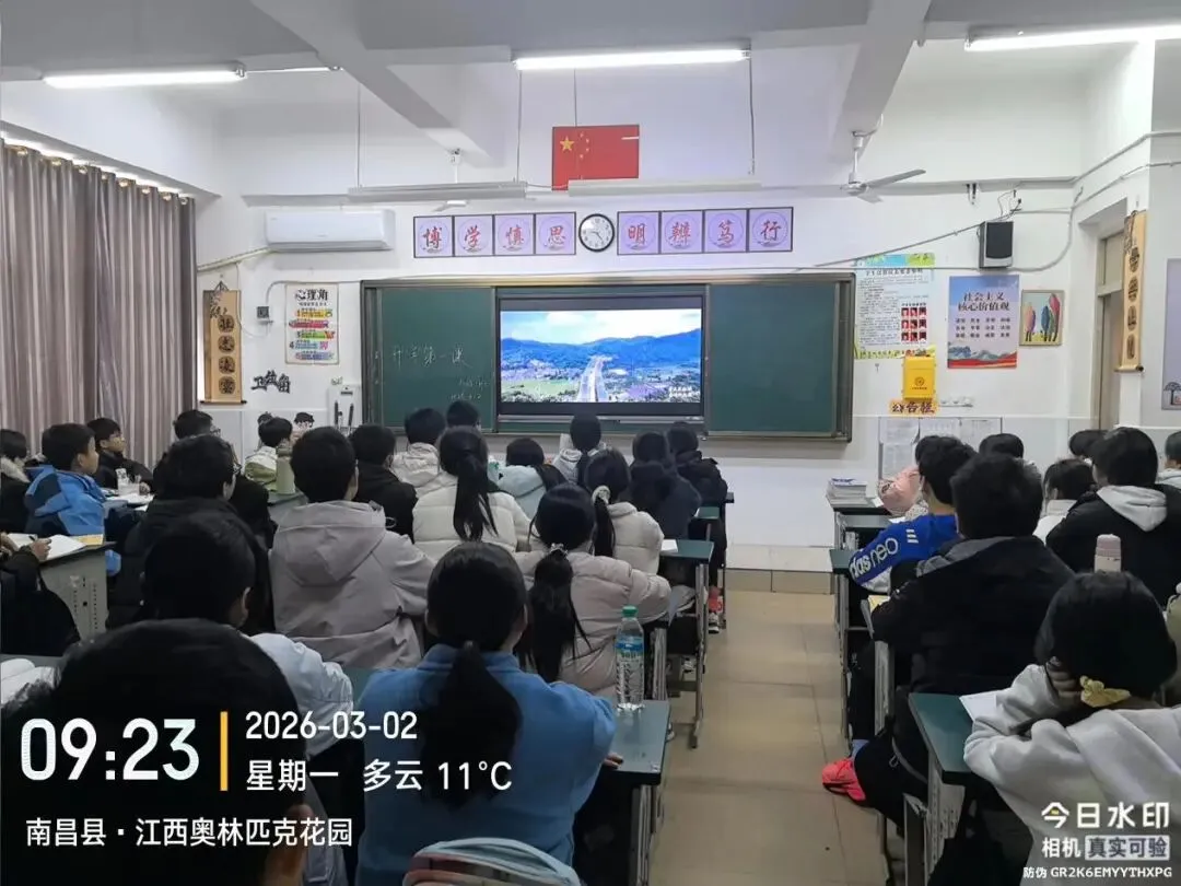 在抓实安全教育的同时,学校积极响应南昌县教体局号召,将“开学第一课”与“文明素养第一课”深度融合,组织全校师生共同观看《爱我英雄城 奋进新征程》宣传片。窗外春寒料峭,教室内暖意融融。当英雄城南昌的历史底蕴、红色基因与现代风貌在屏幕上徐徐展开,孩子们的目光被深深吸引。从八一起义的烽火到城市发展的日新月异,每一帧画面都在孩子们心中播下了爱家乡、讲文明的种子。