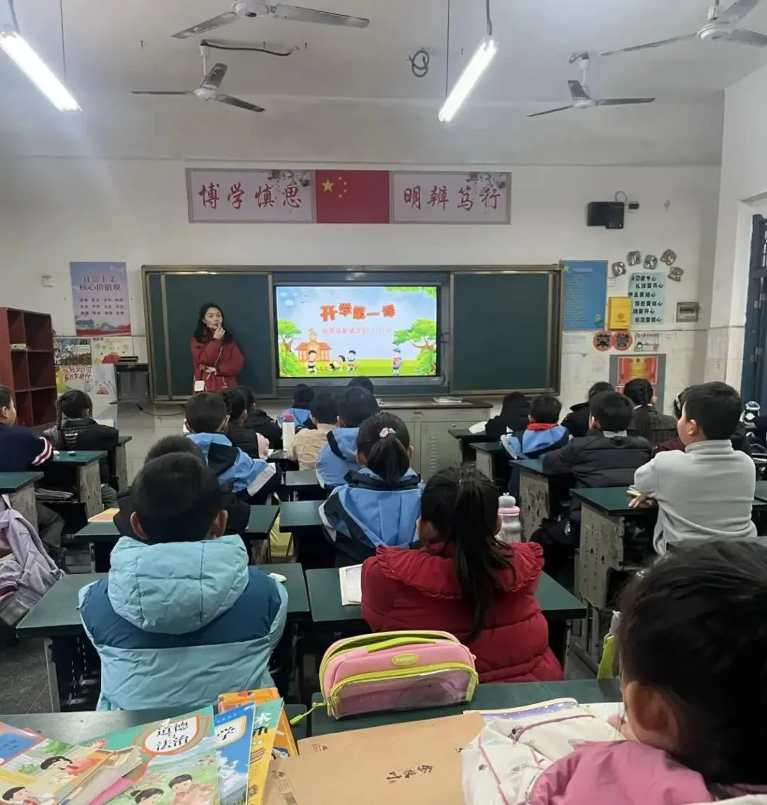 “安全,是送给孩子最好的开学礼物。” 开学第一天,各班级围绕交通安全、校园活动安全、防寒保暖注意事项等内容,开展了形式多样的安全教育活动。 面对倒春寒,老师们不仅叮嘱学生注意添衣保暖,还通过生动的案例讲解和互动演练,让安全知识入脑入心。一句句暖心提醒,一次次耐心讲解,如春风化雨般浸润心田,为孩子们的健康成长撑起坚实的“保护伞”。