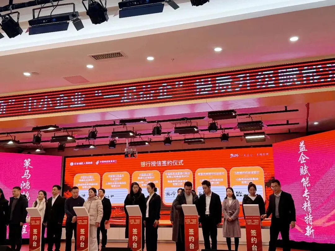 本次活动汇聚省市区相关主管部门、金融机构及红谷滩区省级专精特新中小企业代表,以政策解读、产品推介、银企签约为核心,搭建政银企深度对接平台。作为参会的重点金融机构,南昌农商银行红谷支行受邀参与全程活动,在第一阶段签约仪式中,红谷支行负责人与意向专精特新企业现场签订融资授信协议,根据企业经营发展规划及资金需求,量身定制授信方案,为企业技术研发、产能升级提供稳定的金融支撑,此次签约也成为银企携手、共促发展的重要契机。